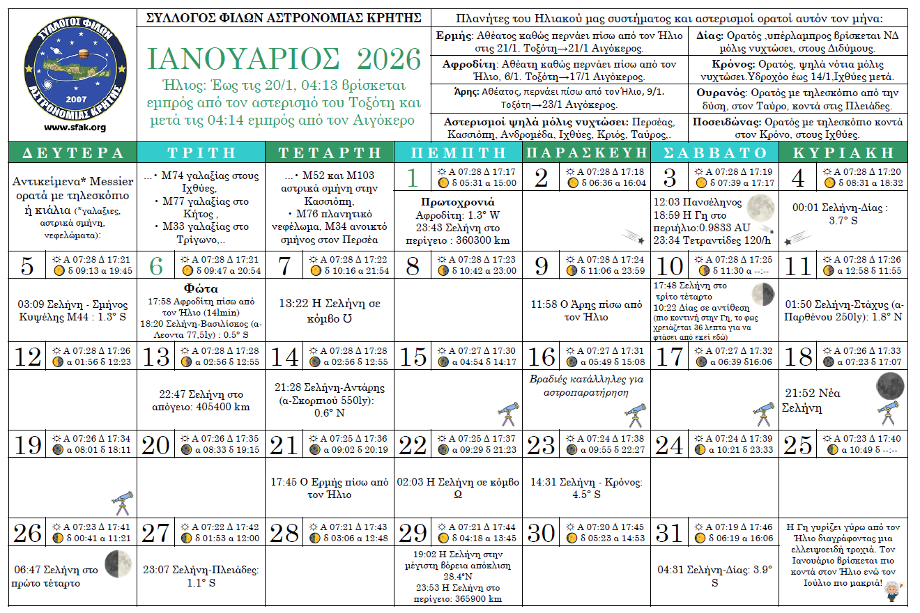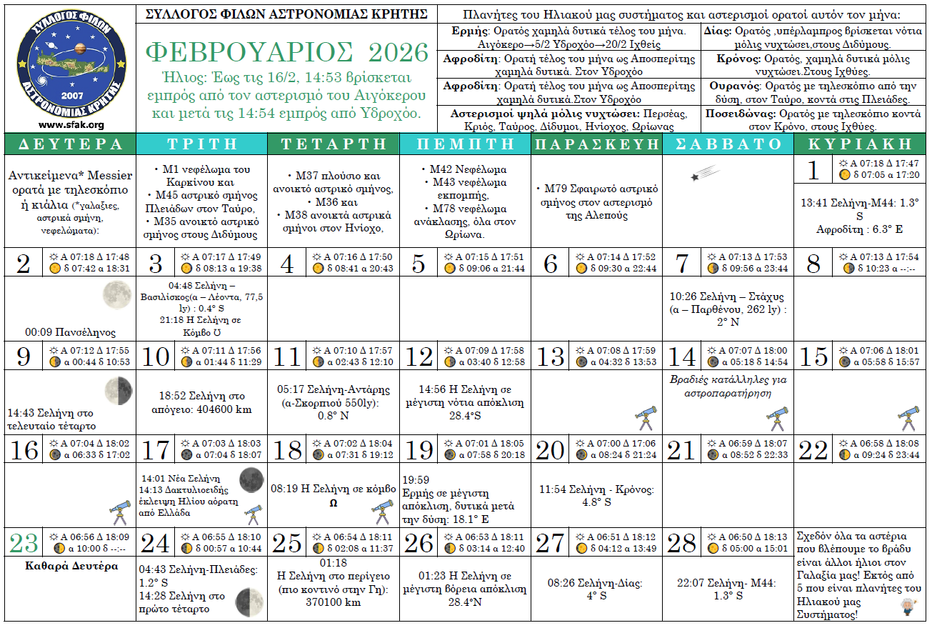 Γενική Εκλογική Συνέλευση του Συλλόγου Φίλων Αστρονομίας Κρήτης στις 19:00.